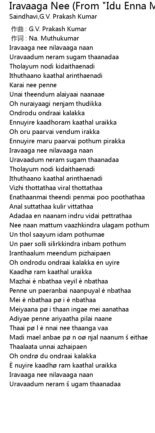 Iravaaga Nee Song Lyrics - Vikram prabhu and keerthy suresh, music director :