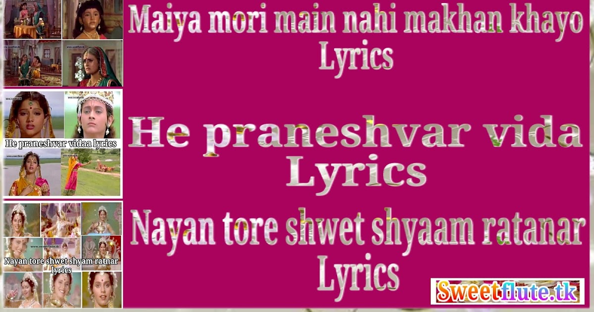 Maiya Mori Main Nahin Makhan Khayo Lyrics / Me toh baba nand key lala kahe chor kahau apne ghar me kaun kamee jo bahar makhan khau bat sunee toh mata yashoda hanskar kanth lagayo phir bolee too nahee makhan khayo ree maiya moree main.
