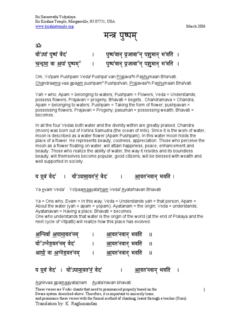 Manthra Pushpam Lyrics : Download mantra pushpam song on gaana.com and listen vishnu sahasranamam mantra.