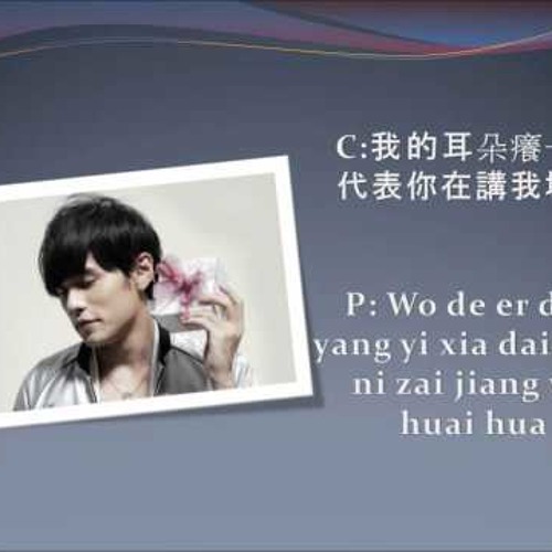 Mine Mine Jay Chou - Mine mine (mine…) 太快, 就承认我真的很想你 tài kuài, jiù chéngrèn wǒ zhēn de hěn xiǎng nǐ if i admit i miss you a lot too quickly 会不会没有男子气概 huì bù huì méiyǒu nánzǐ qìgài will i be seen to have no guts you say bye bye singer: