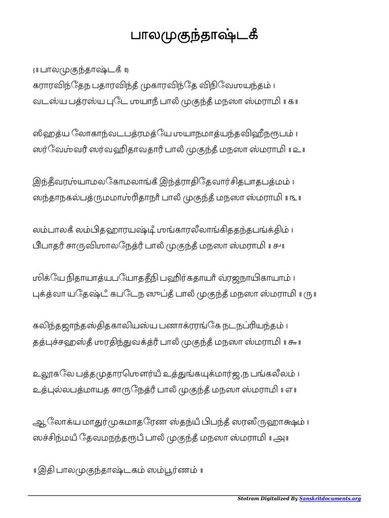 Mukundashtakam Lyrics : Sri bala mukundashtakam is a wonderful prayer glorifying the transcendental form, attributes and sweet pastimes of the supreme lord sri krishna as a child (bala mukunda).