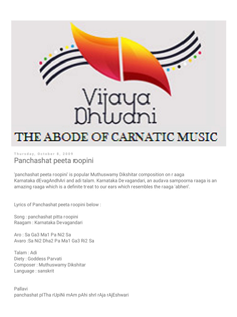 Panchashat Peeta Roopini Lyrics - Listen to panchashat peeta roopini by kadri gopalnath.