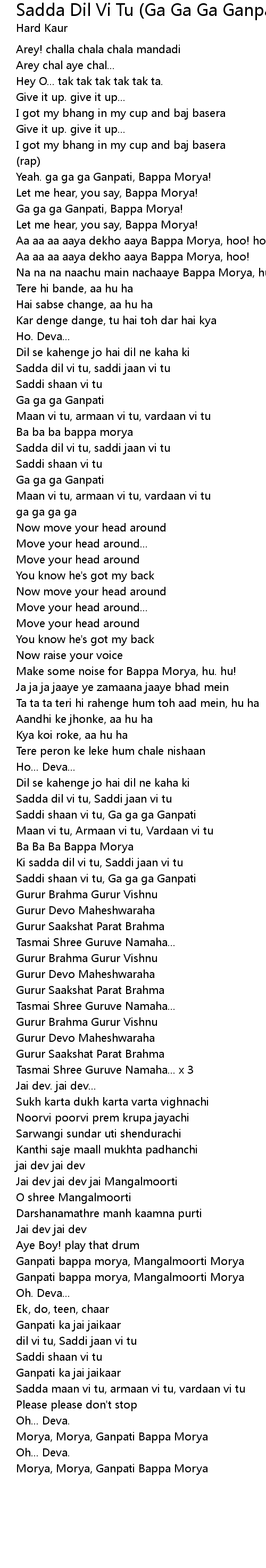 Sadda Dil Vi Tu Lyrics : Sadda dil vi tu song is sung by hard kaur.