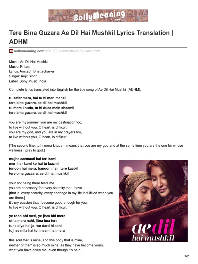Tere Bina Guzara Ae Dil Hai Mushkil / Your absence is testing me.