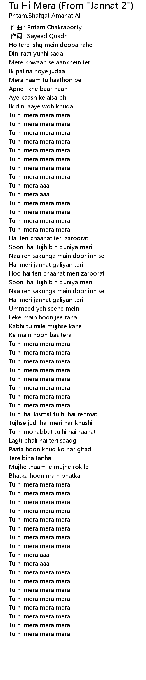 Tu Hi Mera Mera - Dhadkan yeh kehti hai dil tere bin dhadke na.